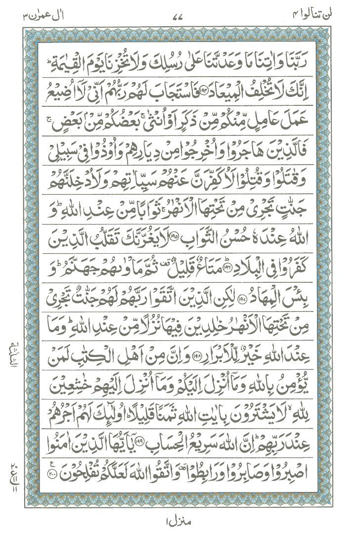 JUZ No. 4 Surah No. 3 " Al-Imran " Ayat No. 166 to 200