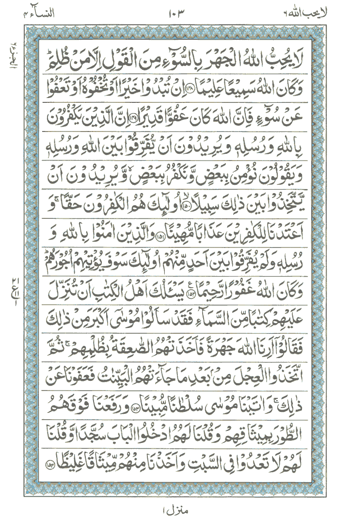 JUZ No. 6 Surah No. 4 " An-Nisa' " Ayat No. 148 to 176