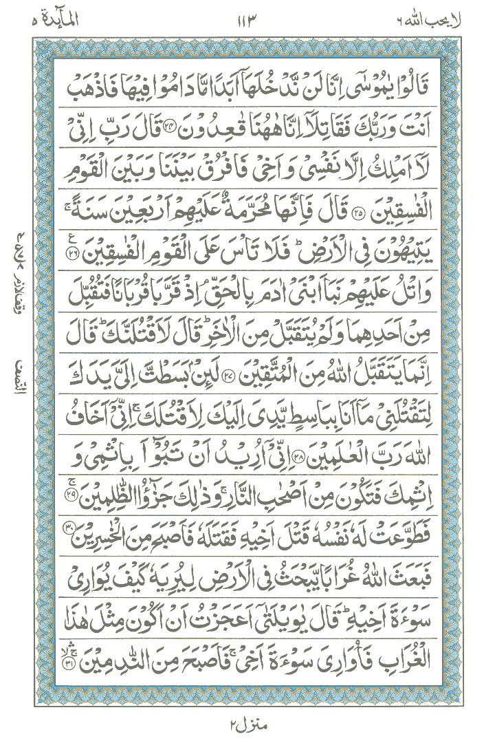 JUZ No. 6 Surah No. 5 " Al-Maidah " Ayat No. 024 to 050