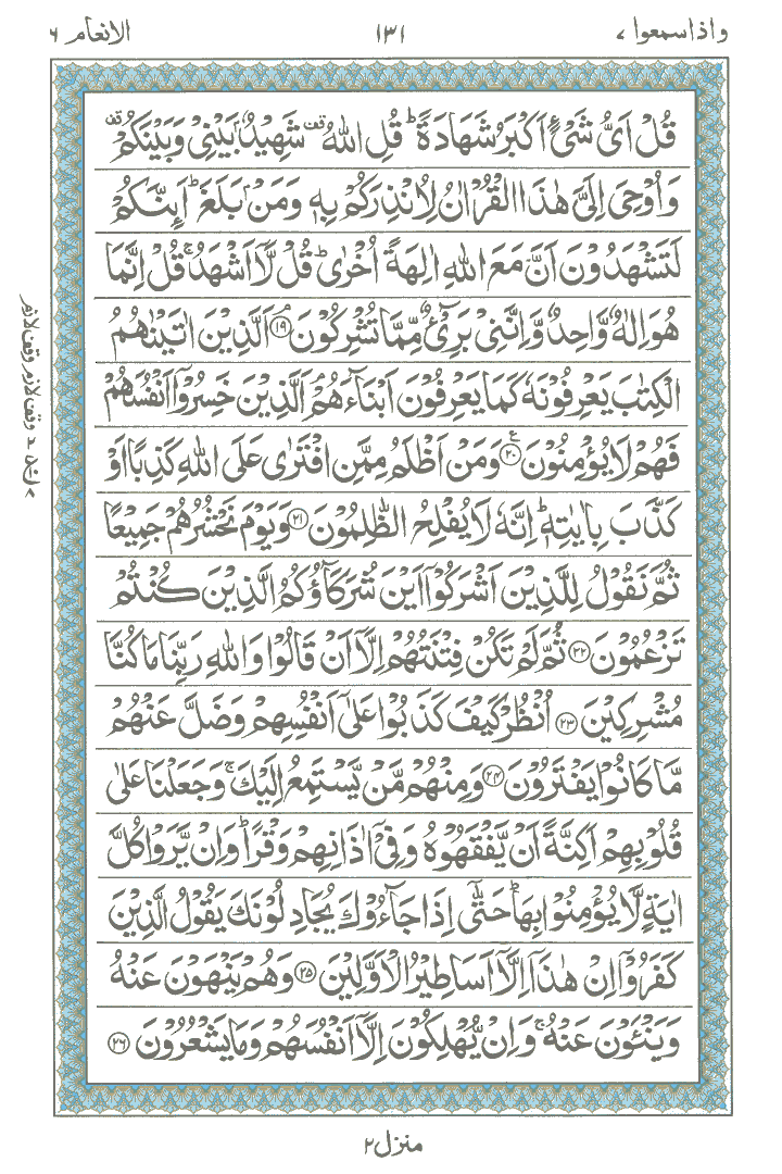 JUZ No. 7 Surah No. 6 " Al-An'aam " Ayat No. 001 to 034