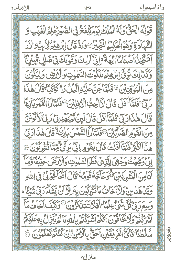 JUZ No. 7 Surah No. 6 " Al-An'aam " Ayat No. 073 to 110