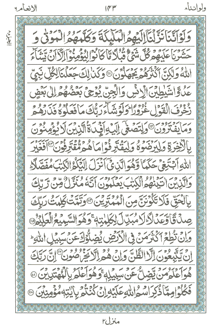 JUZ No. 8 Surah No. 6 " Al-An'aam " Ayat No. 111 to 142