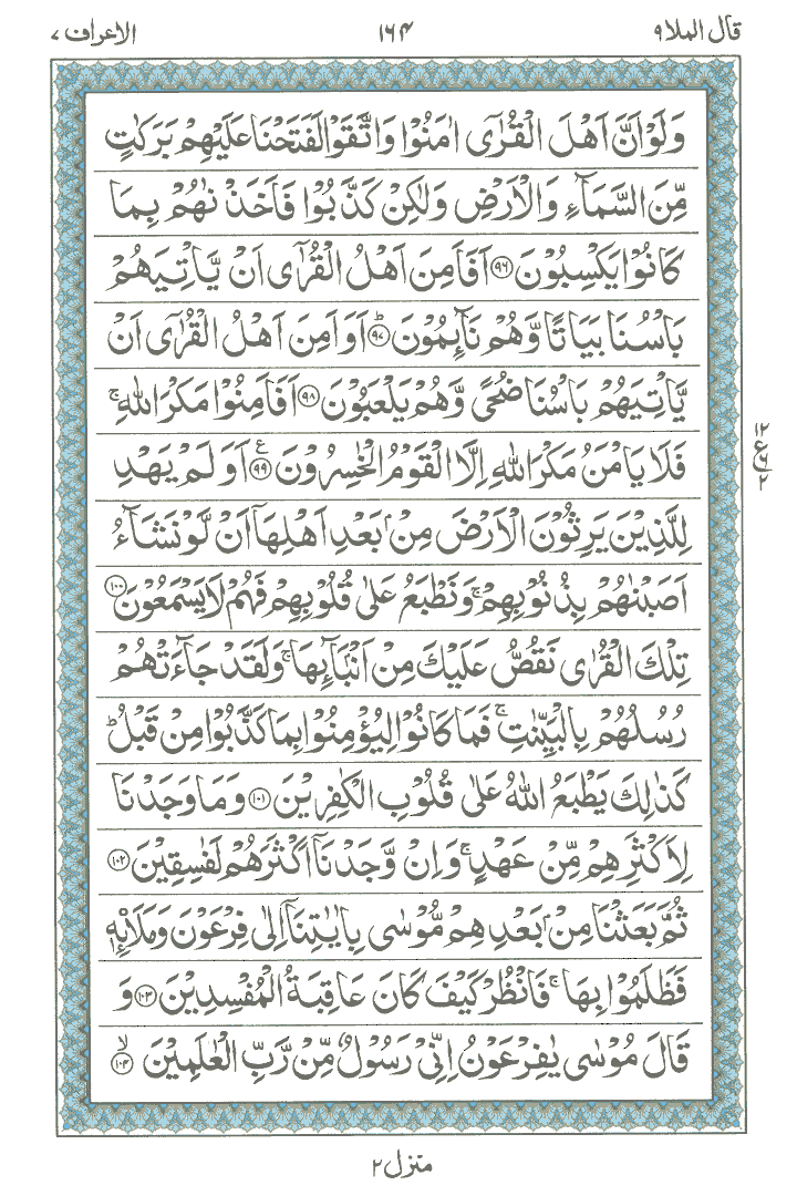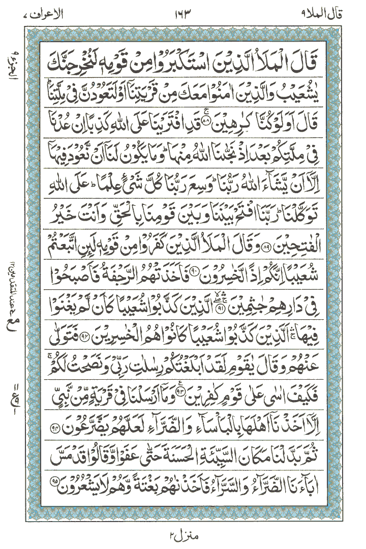 JUZ No. 9 Surah No. 7 " Al-A'araf " Ayat No. 088 to 137