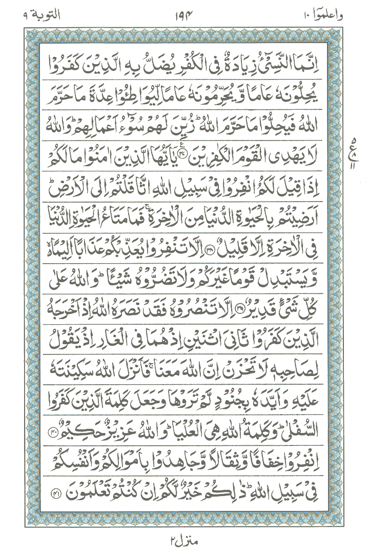 JUZ No. 10 Surah No. 9 " At-Taubah " Ayat No. 032 to 061