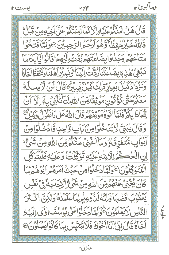 JUZ No. 13 Surah No. 12 " Yusuf " Ayat No. 053 to 086