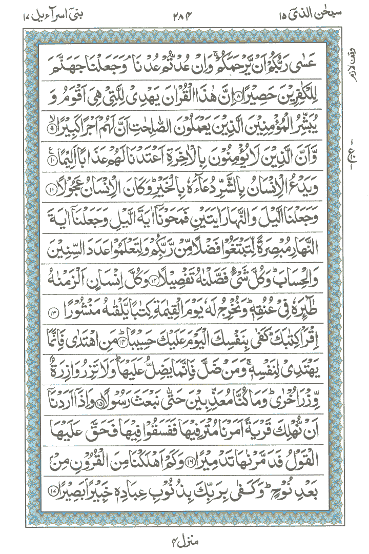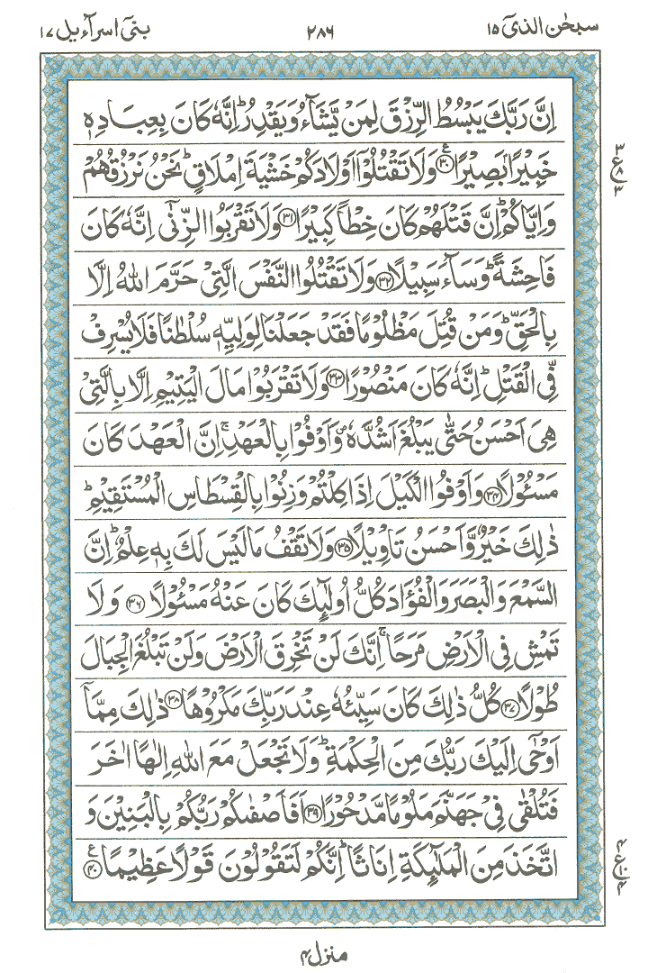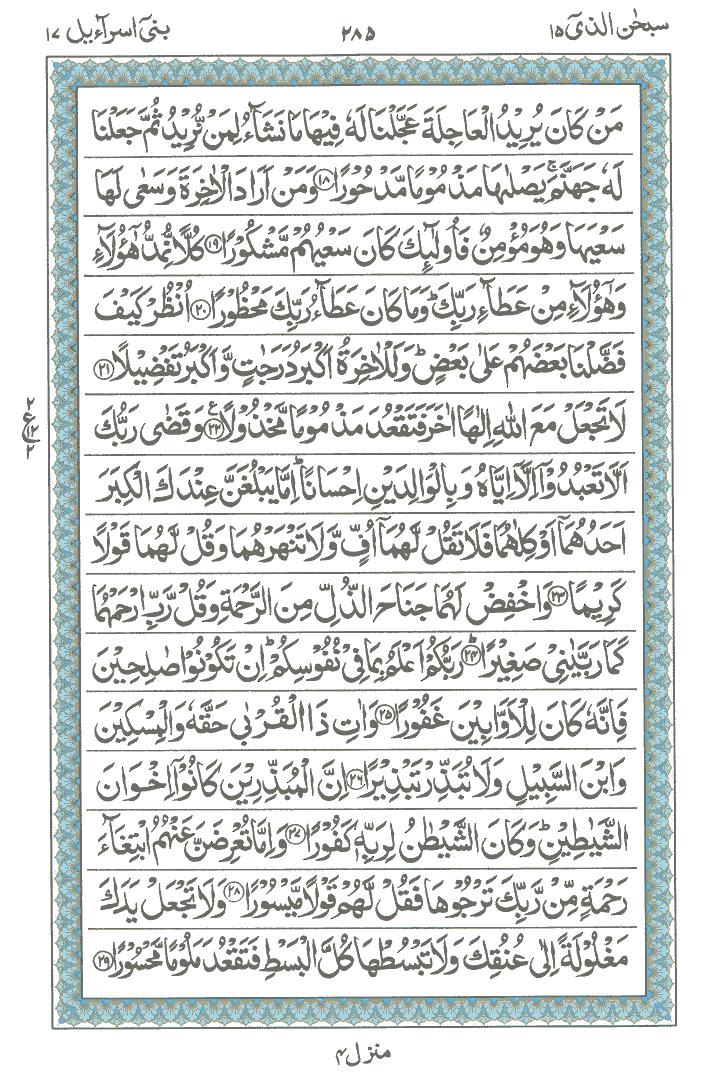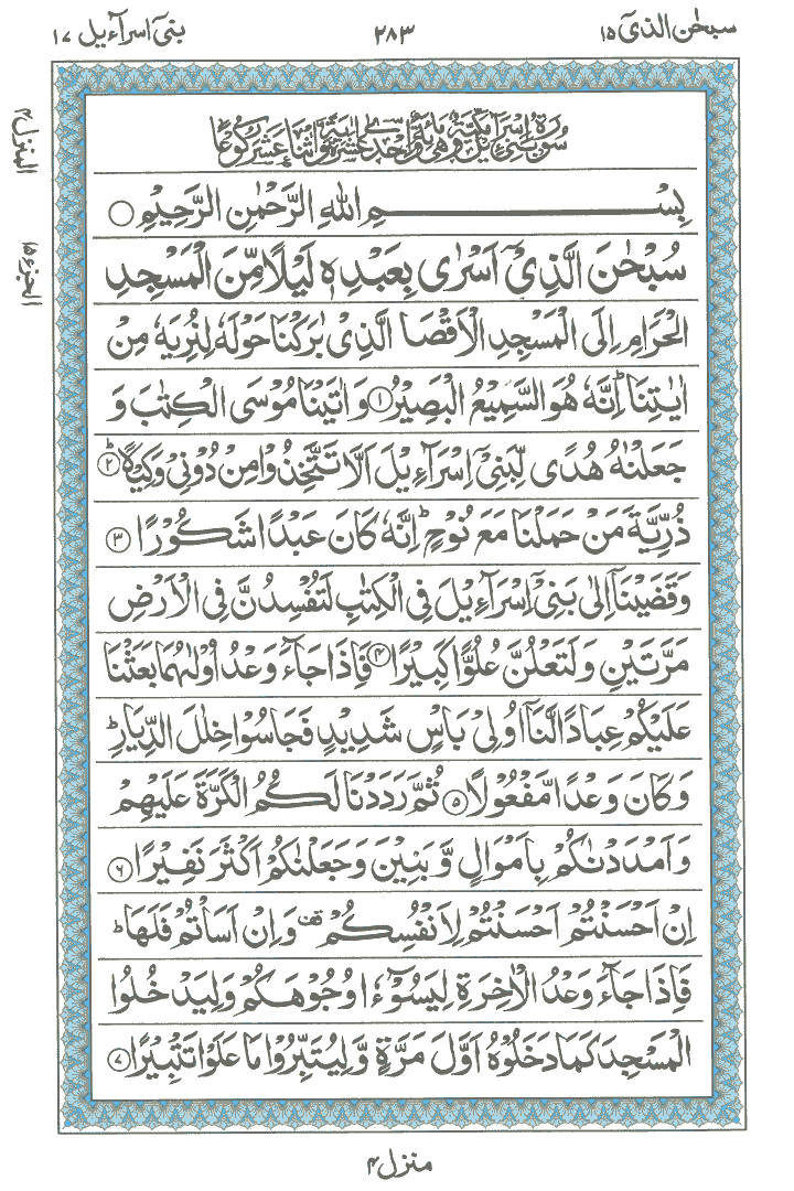 JUZ No. 15 Surah No. 17 " Bani Israil " Ayat No. 001 to 040