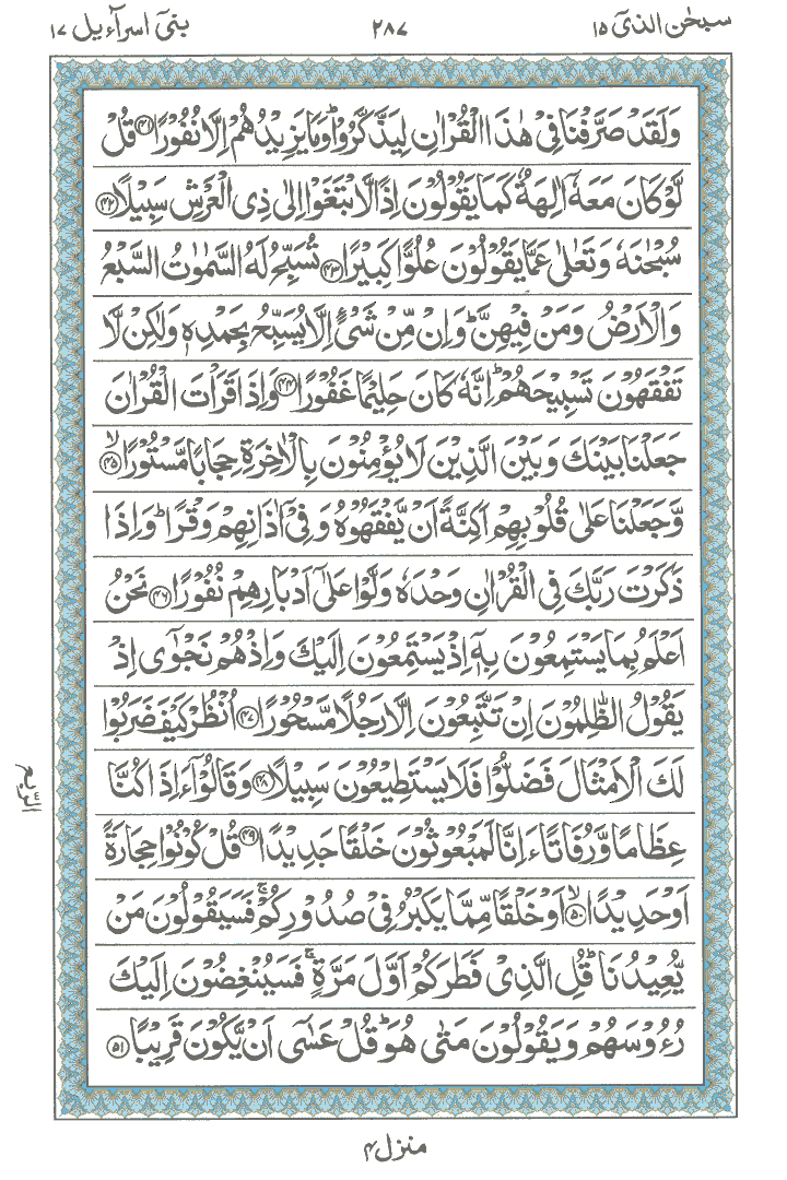 JUZ No. 15 Surah No. 17 " Bani Israil " Ayat No. 041 to 080
