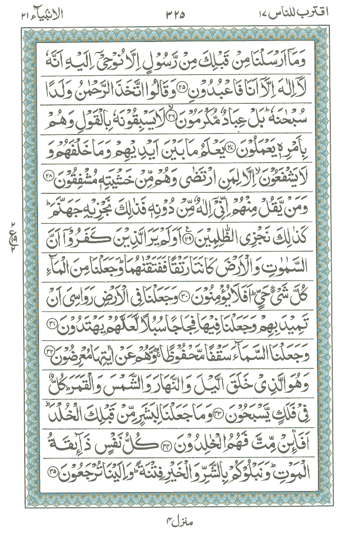 JUZ No. 17 Surah No. 21 " Al-Anbia " Ayat No. 001 to 035