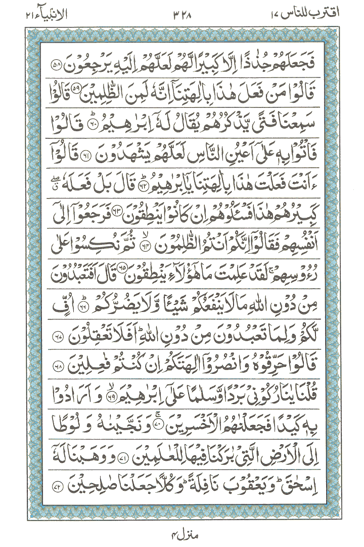 JUZ No. 17 Surah No. 21 " Al-Anbia " Ayat No. 036 to 072