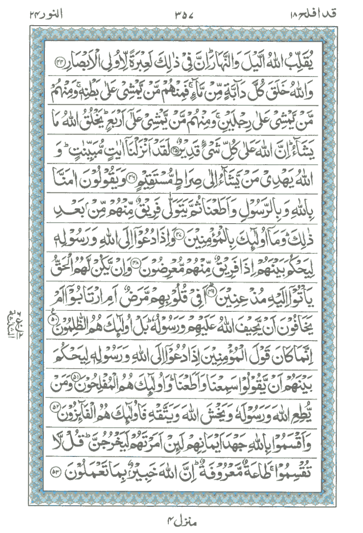 JUZ No. 18 Surah No. 24 " An-Nur " Ayat No. 044 to 064