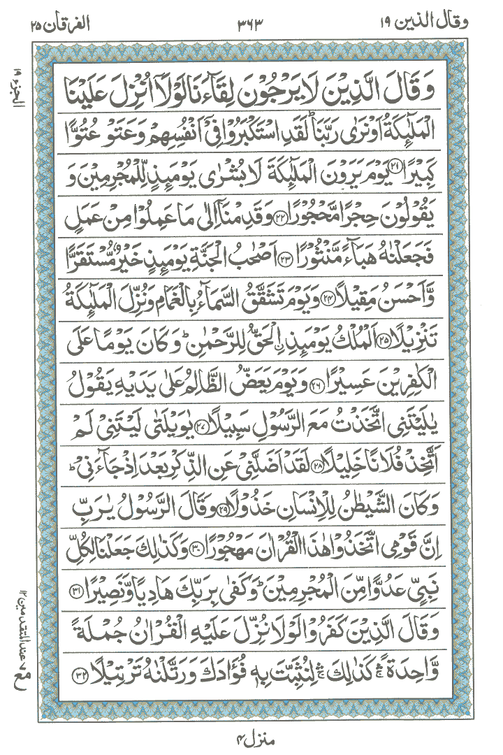 JUZ No. 19 Surah No. 25 " Al-Furqan " Ayat No. 021 to 077