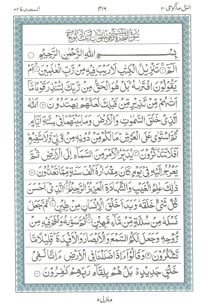 JUZ No. 21 Surah No. 32 " As-Sajdah " Ayat No. 001 to 030