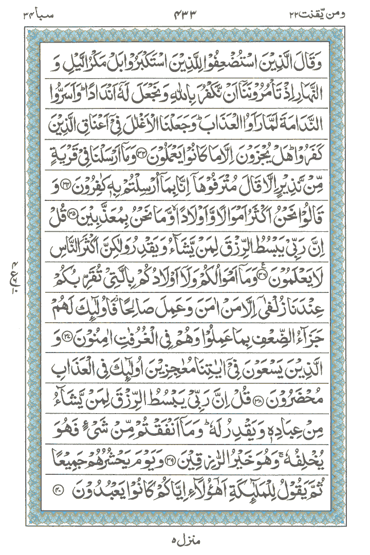 JUZ No. 22 Surah No. 34 " Saba " Ayat No. 023 to 054