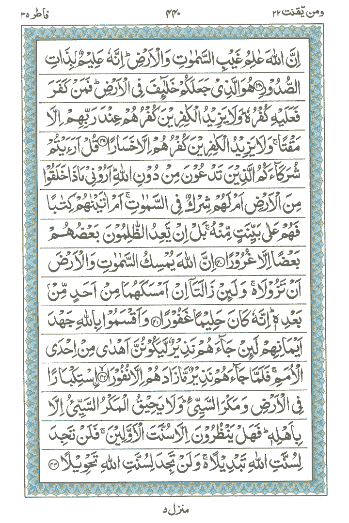 JUZ No. 22 Surah No. 35 " Fatir " Ayat No. 030 to 045