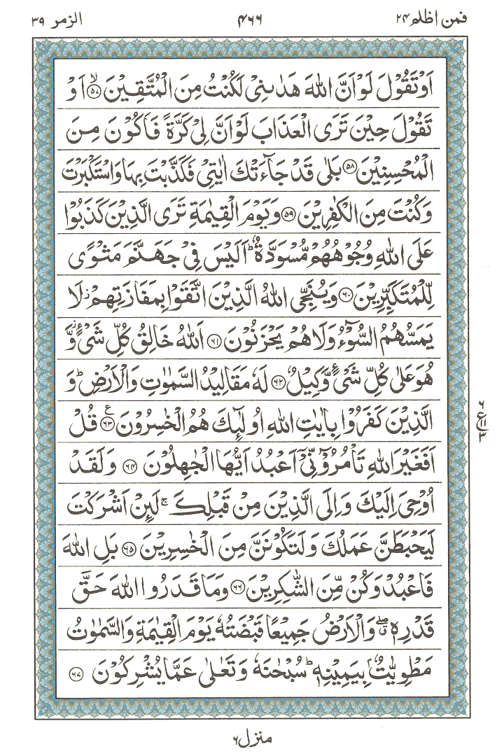 JUZ No. 24 Surah No. 39 " Az-Zumar " Ayat No. 057 to 075