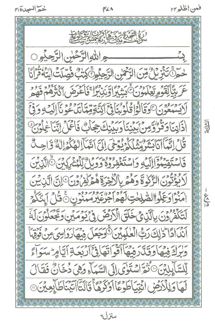 JUZ No. 24 Surah No. 41 " Haamim Sajadah " Ayat No. 001 to 028