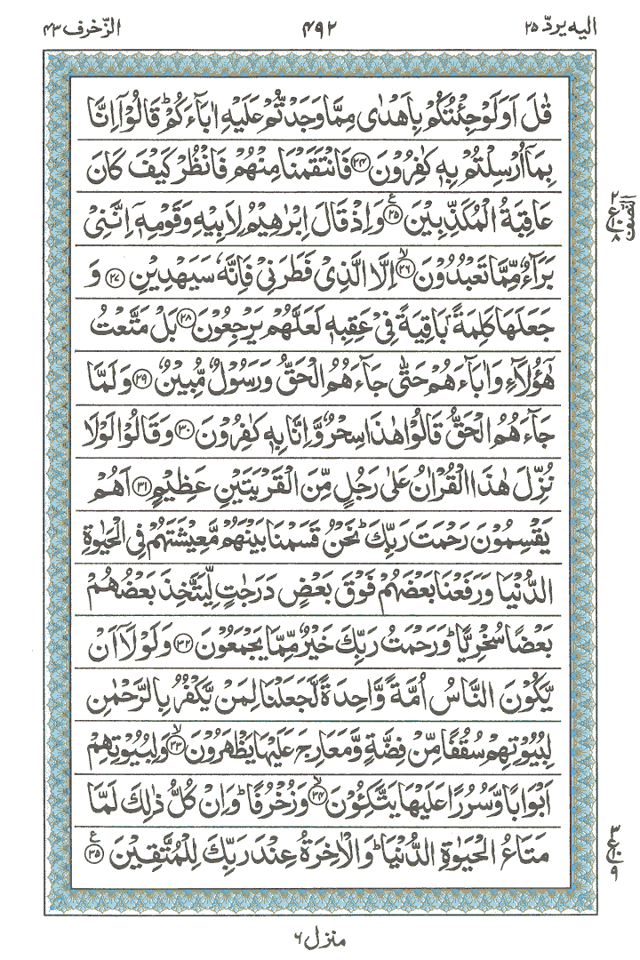 JUZ No. 25 Surah No. 43 " Az-Zukhraf " Ayat No. 001 to 049