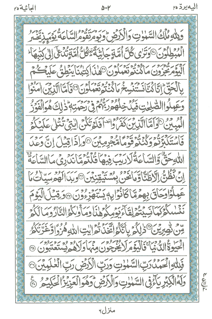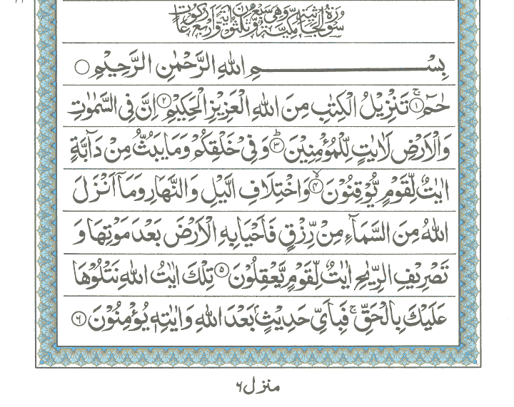 JUZ No. 25 Surah No. 45 " Al-Jaasiah " Ayat No. 001 to 037