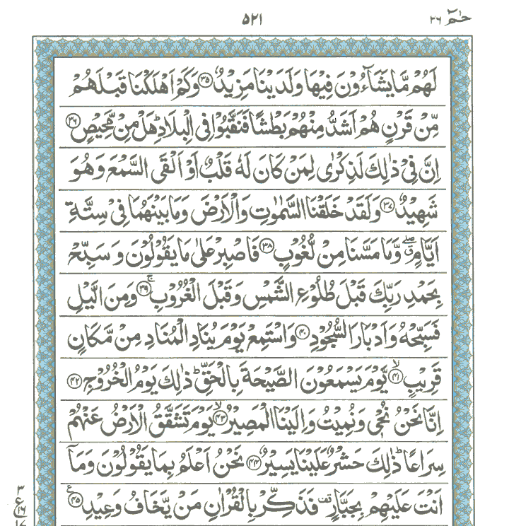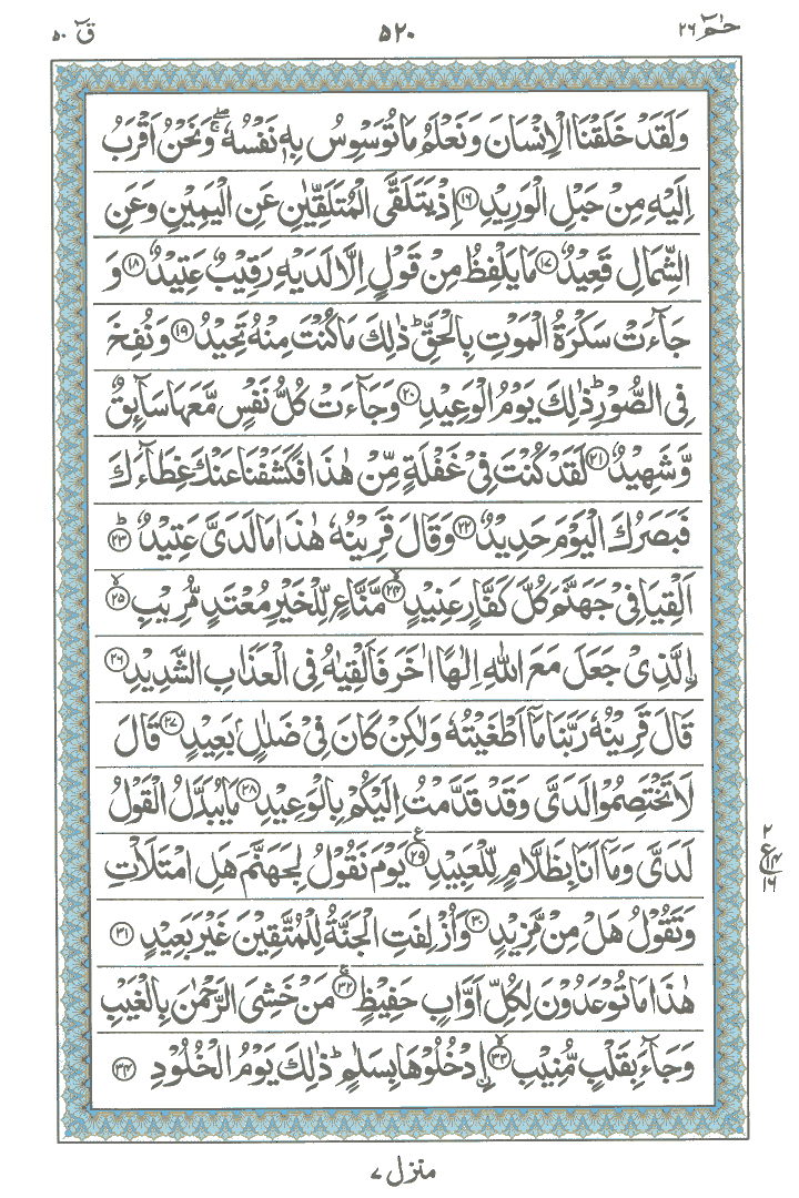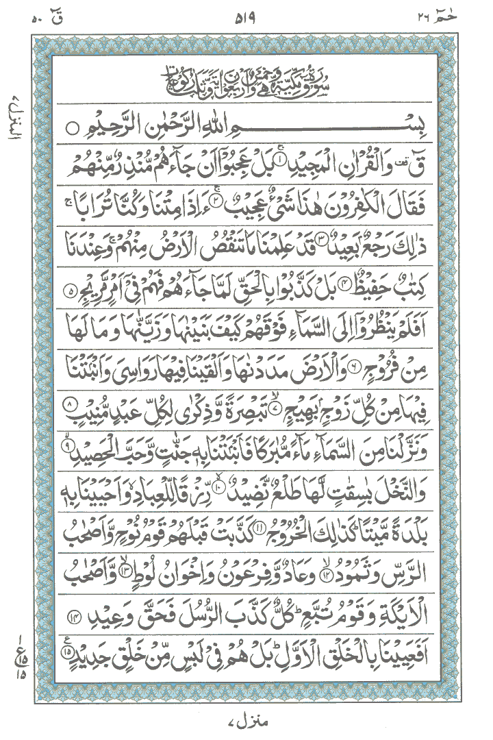 JUZ No. 26 Surah No. 50 " Qaaf " Ayat No. 001 to 045