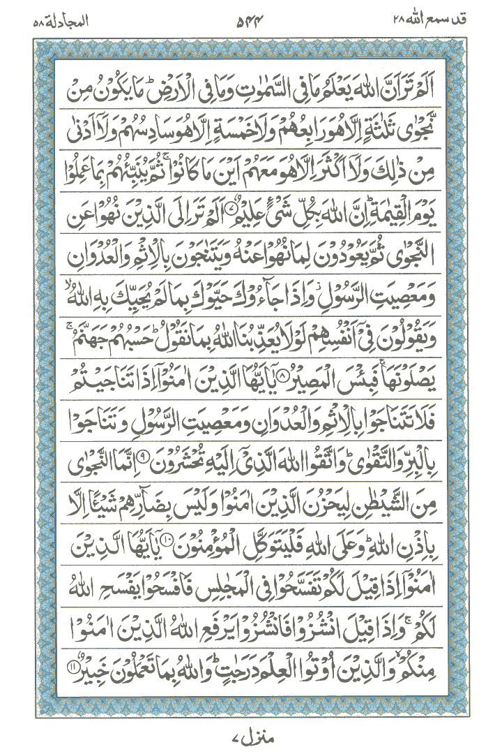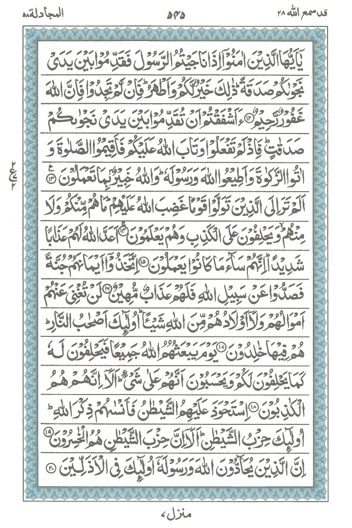 JUZ No. 28 Surah No. 58 " Al-Mujadilah " Ayat No. 001 to 022