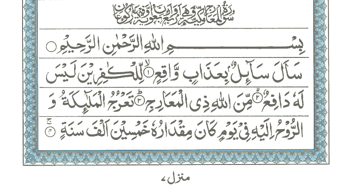 JUZ No. 29 Surah No. 70 " Al-Meaarij " Ayat No. 001 to 0