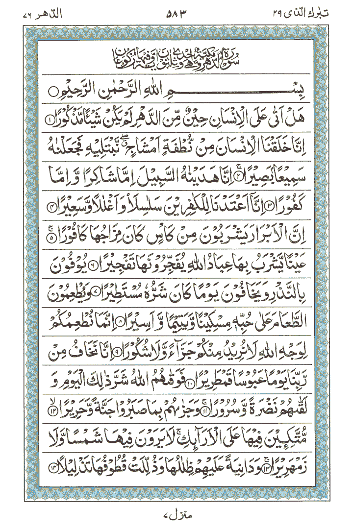 JUZ No. 29 Surah No. 76 " Ad-Dahar " Ayat No. 001 to 031