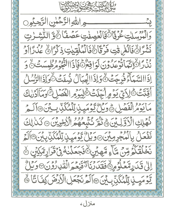 JUZ No. 29 Surah No. 77 " Al-Mursalaat " Ayat No. 001 to 0