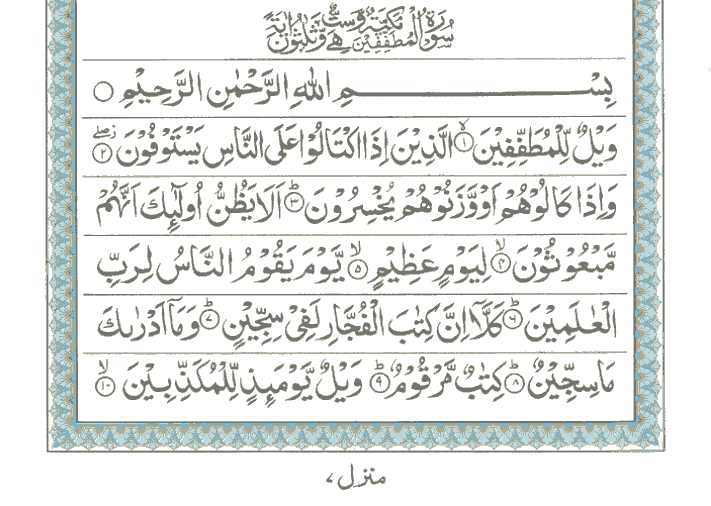 JUZ No. 30 Surah No. 83 " Al-Mutaffifin " Ayat No. 001 to 036