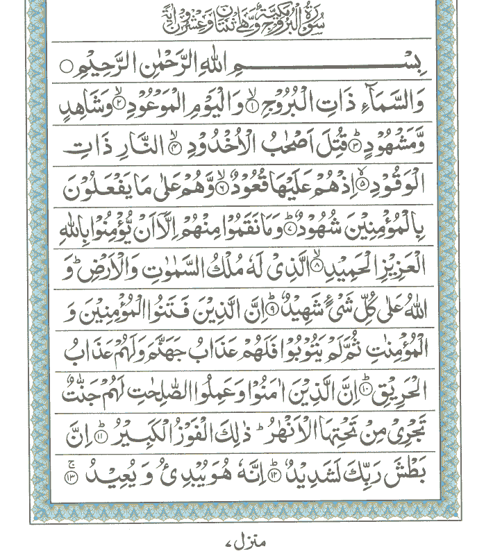 JUZ No. 30 Surah No. 85 " Al-Buruj " Ayat No. 001 to 022