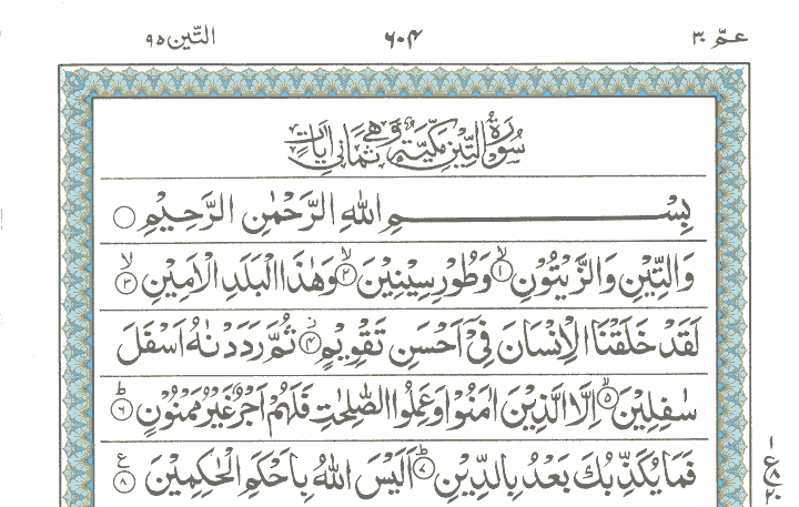 JUZ No. 30 Surah No. 95 " At-Teen " Ayat No. 001 to 008