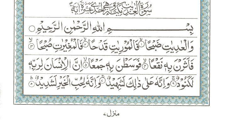 JUZ No. 30 Surah No. 100 " Al-'Adiyaat " Ayat No. 001 to 011
