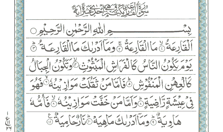 JUZ No. 30 Surah No. 101 " Al-Qariah " Ayat No. 001 to 011