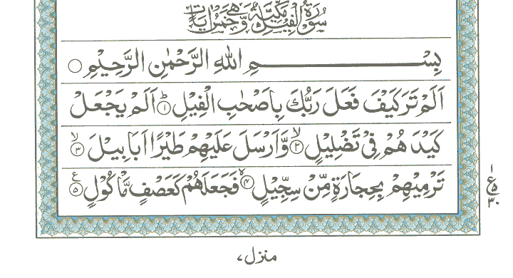 JUZ No. 30 Surah No. 105 " Al-Feel " Ayat No. 001 to 005