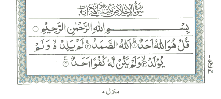 JUZ No. 30 Surah No. 112 " Al-Ikhlas " Ayat No. 001 to 004